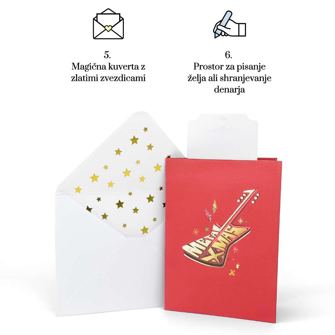 •     💌Poleg voščilnice prejmete elegantno belo kuverto z zlatimi zvezdicami in izvlečno kartico, pripravljeno za vaše osebno sporočilo.